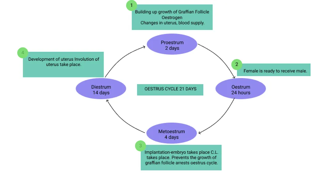 | Animal | Age of Puberty (months) | Gestation Period (Days) | Oestrus Cycle (Days) | Heat Period (Estrus Duration) |