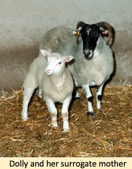 | Dolly the sheep | First cloned mammal (1996, Scotland) |