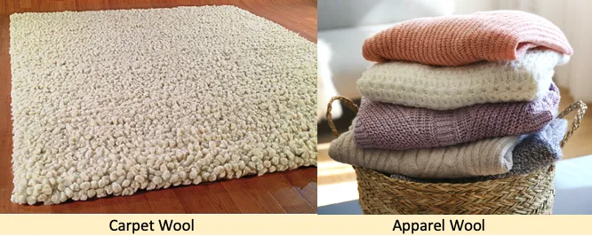 - Apparel Wool: Use for manufacturing of cloths. Apparel wool is finer, softer, and lighter, suitable for garments, shawls, and other clothing items.