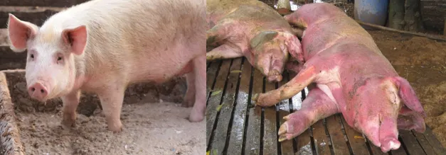 | ASF symptoms | Fever 40–42°C, bloody diarrhoea, cyanosis (blue-purple) on ears/nose/legs, sudden death |