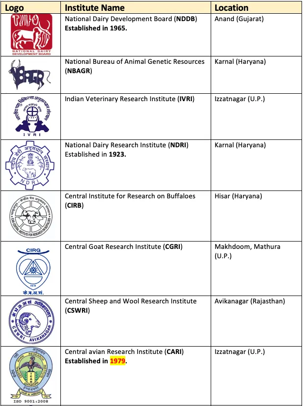 Familiarity with these key institutions and their locations is frequently tested in competitive examinations. Each institute plays a specialised role in research, development, and training related to animal husbandry and dairying.